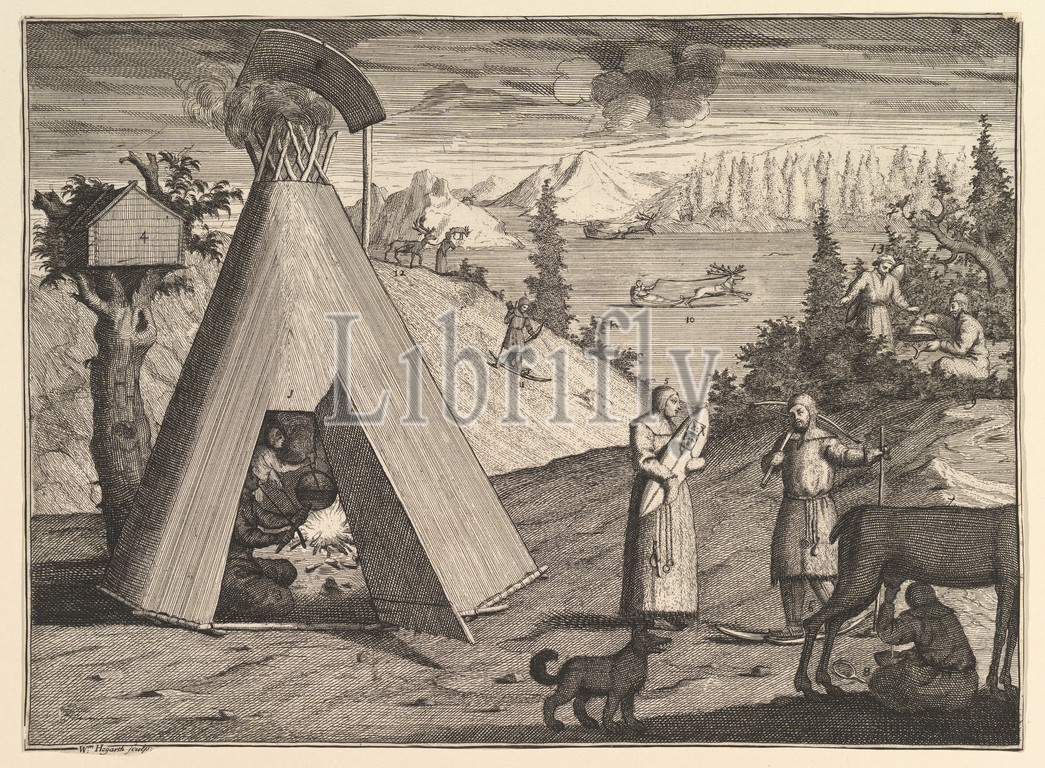 A Lapland Hut (Aubry de La Mottraye's 'Travels throughout Europe, Asia and into Part of Africa...,' London, 1724, vol. II, pl. 38), 1723–24, Etching and engraving, sheet: 9 15/16 x 13 1/2 in. (25.2 x 34.3 cm), Prints, William Hogarth (British, London 1697–1764 London)