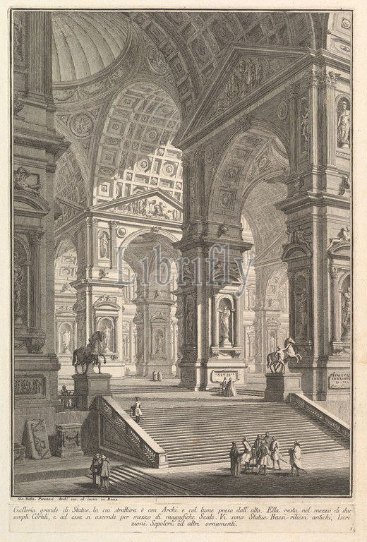 Large sculpture gallery built on arches and lit from above . . . (Galleria grande di Statue, la cui struttura è con Archi e col lume preso dall'alto . . . .), ca. 1750, Etching, Plate (Image): 14 1/16 × 9 13/16 in. (35.7 × 24.9 cm), Prints, Giovanni Battista Piranesi (Italian, Mogliano Veneto 1720–1778 Rome)