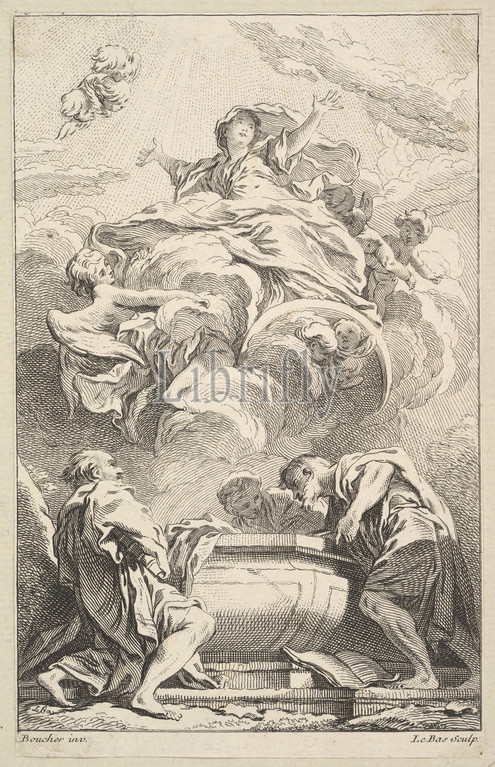 L'Assomption, Etching and engraving, sheet: 7 1/2 x 4 3/4 in. (19 x 12 cm), Prints, Jacques Philippe Le Bas (French, Paris 1707–1783 Paris), After François Boucher (French, Paris 1703–1770 Paris)