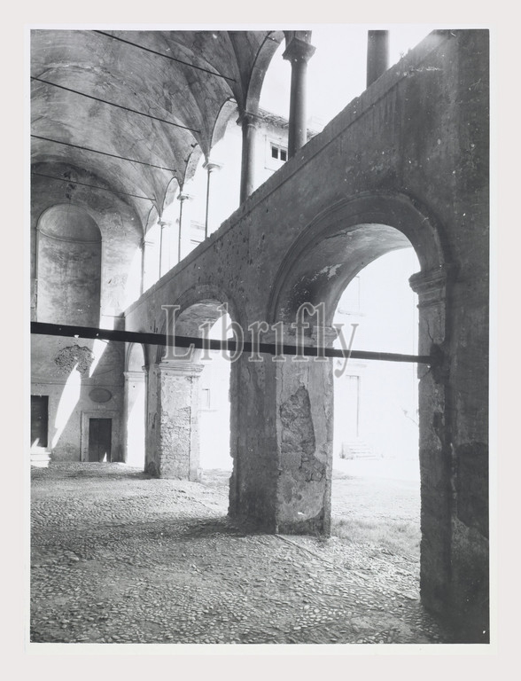 Lazio, Roma, Rome, Genazzano Castello Colonna, Italy, italian country, visual history, Exterior views, originally, medieval, structure, rebuilt, 1400s, Baroque period, Views, loggia, fountain, niched Roman statue.Photo 1983
