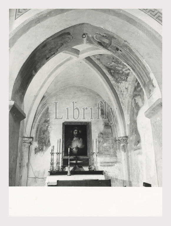 Lazio Roma Vicovaro S. Cosimato, this is my Italy, the italian country of visual history, Post-medieval Architecture, sculpture, painting. Rock-cut church with wall paintings and statue of S. Cosimato. A Crucifix is placed above the main altar, and directly below it is a tabernacle in the form of a tempietto. Frescoes cover the walls and vaults of the side chapels, and in one of the chapels is placed an altar of marble decorated with the Lamb of God and the symbols of the four Evangelists. Antiquities Fragments of architectural sculpture.