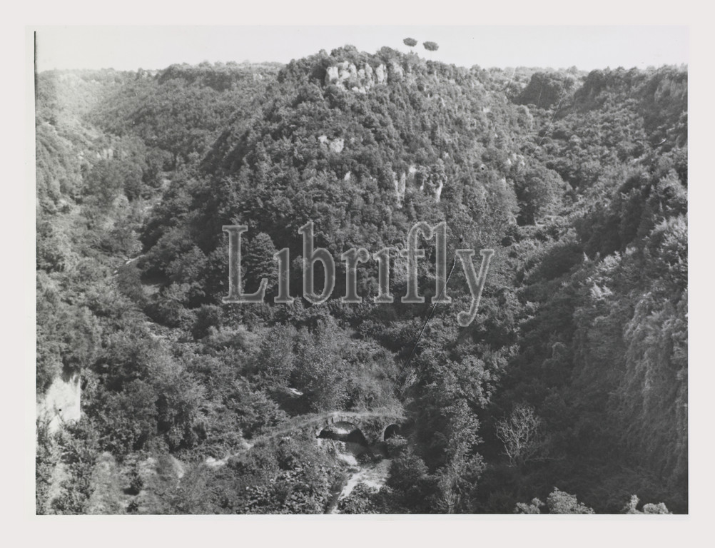 Lazio, Viterbo, Blera Etruscan Necropolis, Italy, italian country, visual history, Antiquities, 6th-5th centuries BC Etruscan necropolis tufo tombs cut, resemble houses, tufo cut, furnishings, streets, niches, cinerary urns, bridges, cloacae, Photo 1984