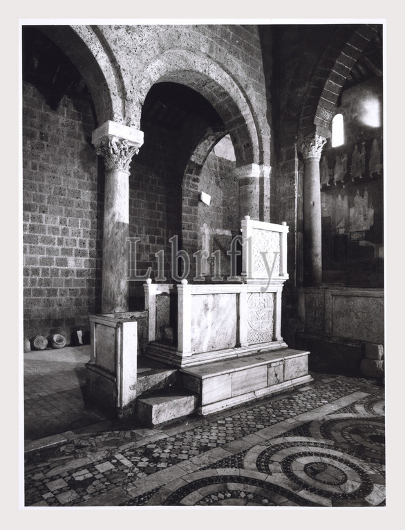 Lazio, Viterbo, Castel Sant'Elia S. Elia, Italy, italian country, visual history, Exterior photos, views, facade, portal, architeectural details, Interior views, nave, carved pulpit, details, ciborium, baldacchino, details, photos, Byzantine, Romanesque, early Renaissance style paintings, Sculpturally, photos, capitals, architectural details, inscriptions, Photo 1983