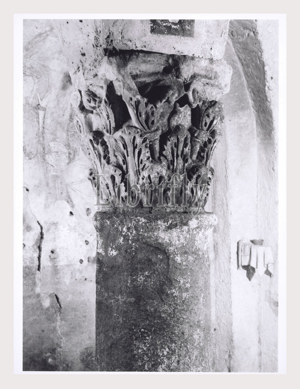 Lazio Viterbo Nepi Oratorio di S. Biagio, this is my Italy, the italian country of visual history, Medieval Architecture, architectural sculpture, portal contains Roman spolia ambo, altar 1170 cofanetto 12th century. Post-medieval Frescoes 14-15th century. Viewsn of damaged frescoes and small crypt. Antiquities Holy water font with Roman spolia