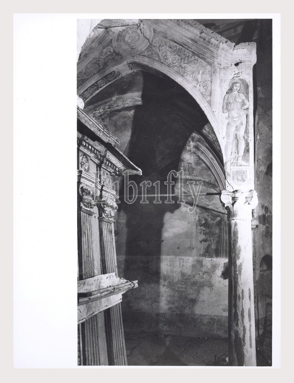 Lazio Viterbo Nepi Oratorio di S. Biagio, this is my Italy, the italian country of visual history, Medieval Architecture, architectural sculpture, portal contains Roman spolia ambo, altar 1170 cofanetto 12th century. Post-medieval Frescoes 14-15th century. Viewsn of damaged frescoes and small crypt. Antiquities Holy water font with Roman spolia