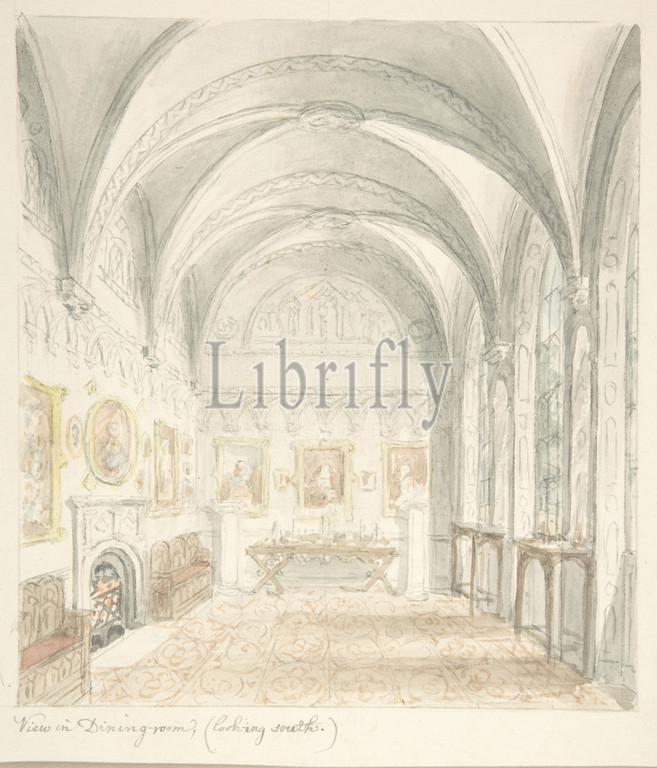 Lea Castle, Worcestershire, Dining Room Looking South, ca, 1816, Watercolor, sheet, 8 x 6 3/4, 20.3 17.1 cm, John Carter, British, London, 1748–1817