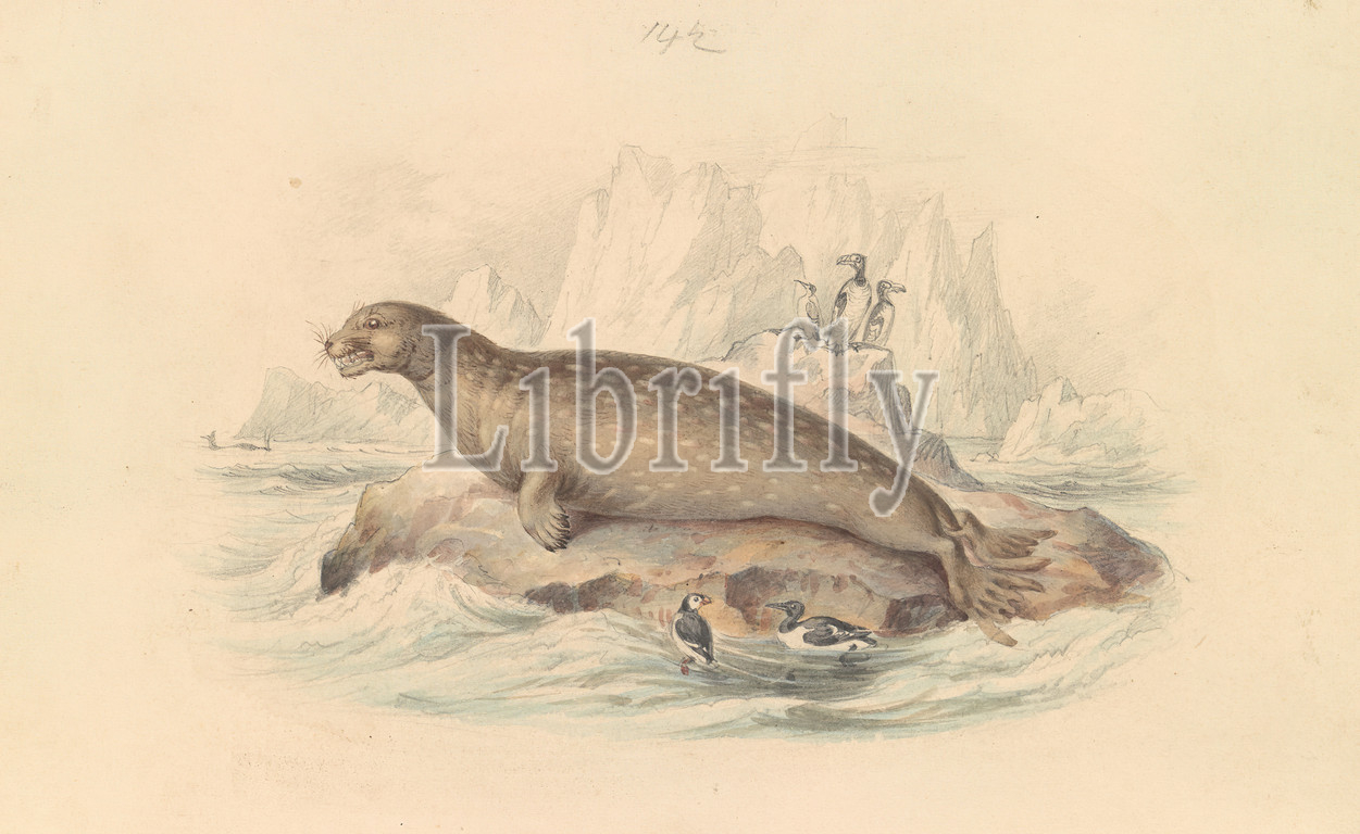 Leopard Seal, James Stewart, 1791–1863, British, ca, 1837, Watercolor, graphite, pen, brown ink, thick, smooth, cream, wove paper, Sheet