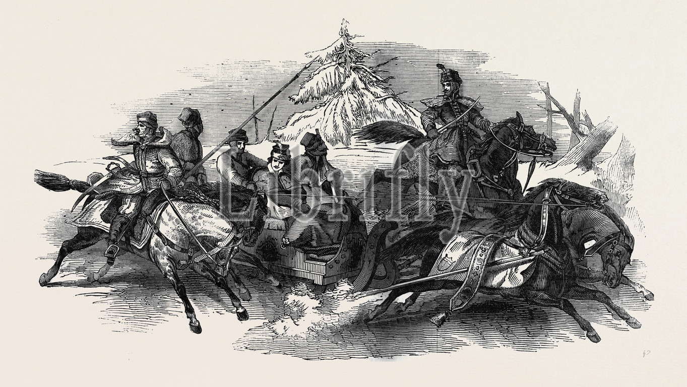 lessing's, sledge, picture, 1845 engraving, engraved image, history, illustrative technique, engravement, victorian, arts, culture, retro styled, vintage, retro, arkheia
