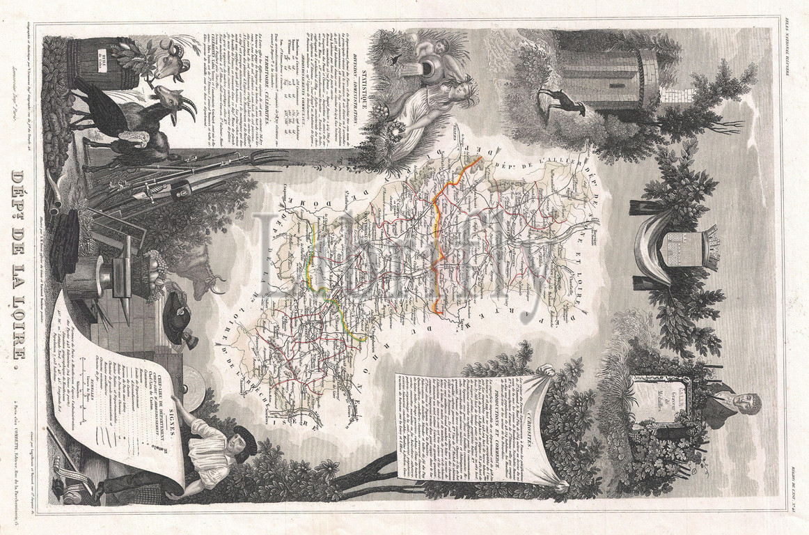 Levasseur Map of the Department De La Loire, France, Loire Valley Region, topography, cartography, geography, land, illustration, geographic, travel, topo, chart, grid, latitude, longitude, geometric, atlas, map, vintage, ancient, history, world, paper, old, retro, earth, atlas, art, historical, decorative, navigation, aged, historic, journey, discovery, exploration, geographical, Mappa mundi, space, region, old map, antique map, rare old maps, old antique plan, ols antique map, old antique view