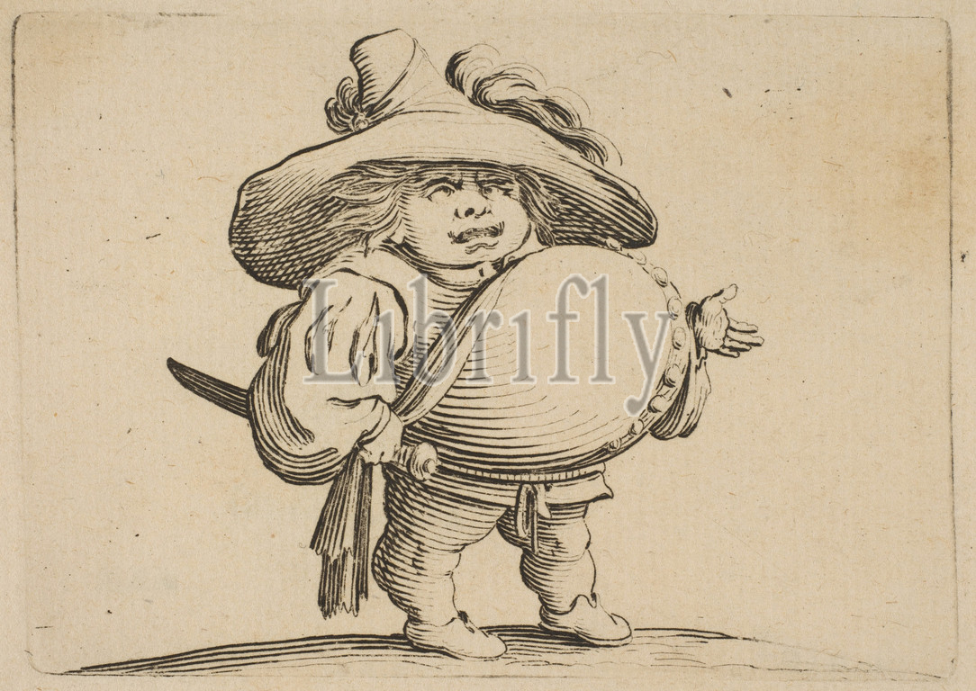 L'Homme au Gros Ventre Orné d'une Rangée de Boutons (Man with a Large Belly Decorated with a Row of Buttons), from Varie Figure Gobbi, suite appelée aussi Les Bossus, Les Pygmées, Les Nains Grotesques (Various Hunchbacked Figures, The Hunchbacks, The Pygmes, The Grotesque Dwarfs), 1616–22, Etching and engraving; first state of two (Lieure), Sheet: 7 5/16 x 10 5/16 in. (18.5 x 26.2 cm), Prints, Jacques Callot (French, Nancy 1592–1635 Nancy)
