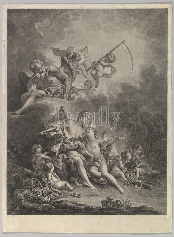 L'Hymen et l'Amour, Hymen, Cupid, 18th century, Etching, engraving, Sheet, 19 1/2 x 14 7/16, 49.5 36.6 cm, Prints, After François Boucher, French, Paris, 1703–1770