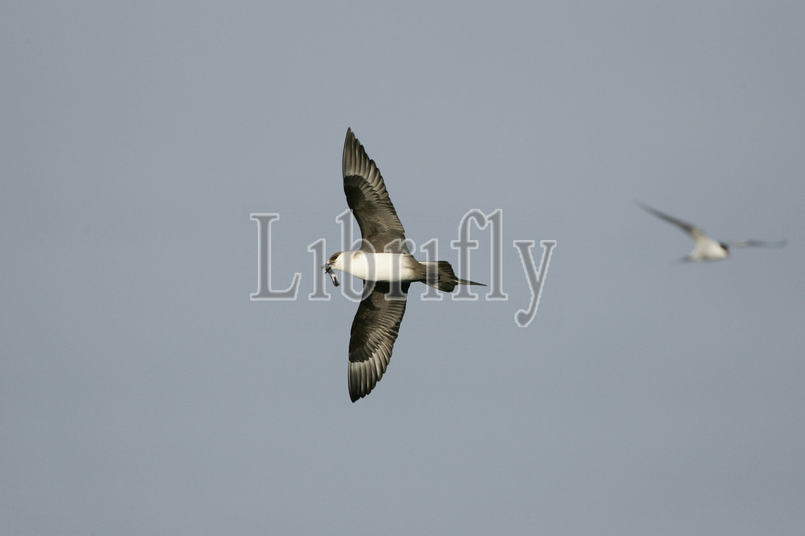 Light morph Parasitic Jaeger in flight, Stercorarius parasiticus