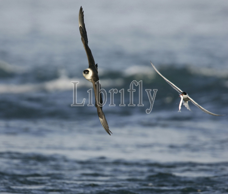 Light morph Parasitic Jaeger in flight, Stercorarius parasiticus