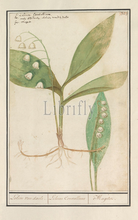 Lily, valley, Convallaria majalis, Lilies, daele, Lilium Convallium, Muguet, title, object, Numbered top right, 328, Top left, name, three languages, Part, fourth album, drawings, flowers, mushrooms, Eleventh, twelve albums, animals, birds, plants, 1600, commissioned, Emperor Rudolf II, explanation, Dutch, Latin, French, NAME, Anselmus Boetius de Boodt, 1596, 1610, paper, watercolor, paint, deck paint, chalk, ink, pen