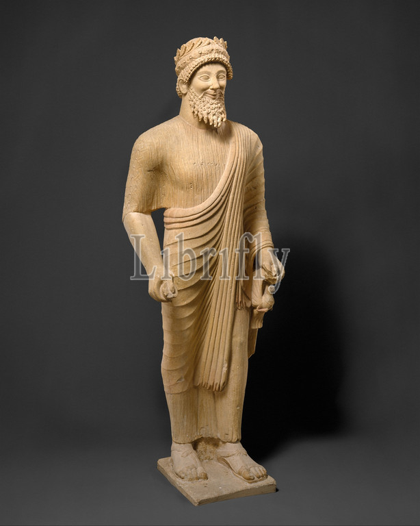 Limestone statue, bearded man, votive offerings, Classical, ca, 475–450 B.C, Cypriot, Limestone, H, 64 3/4, 164.5 cm, Stone Sculpture, absorption, Cyprus, Persian Empire, 526, 5, contacts increased, wealthy East Greek, cities, western coast, Asia Minor, fallen under, Persian, rule, influence, Greek sculptural, style, statue, man dedicated, temple, Golgoi