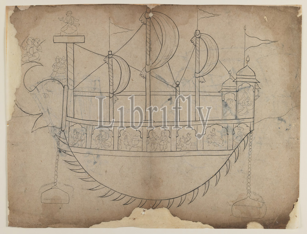 Line Drawing, Fanciful Boat, Indian, Ink, charcoal, paper, 19th century, sheet, 8 5/8 x 11 5/8, 21.9 x 29.5 cm