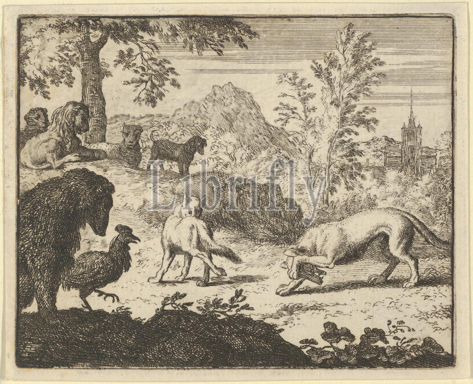 The Lion Allows a Fight Between the Wolf and Renard from Hendrick van Alcmar's Renard The Fox, 1650–75, Engraving; third state of four, Plate: 3 11/16 × 4 9/16 in. (9.3 × 11.6 cm), Prints, Allart van Everdingen (Dutch, Alkmaar 1621–1675 Amsterdam)
