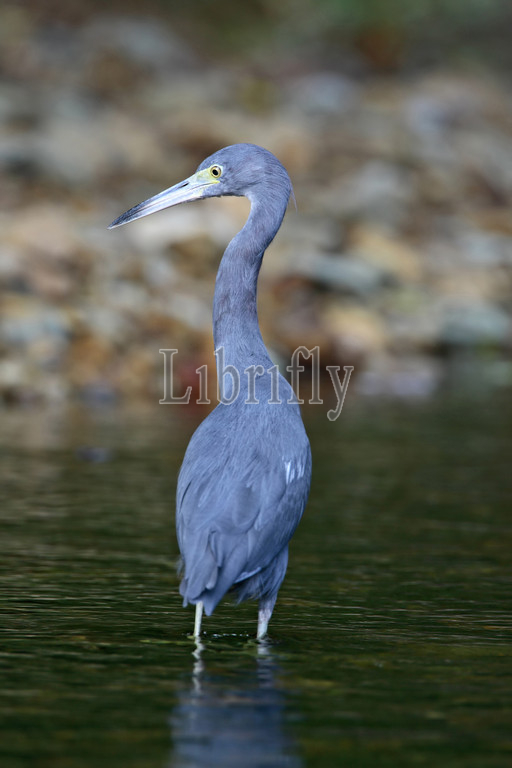 Little Blue Heron subadult wading in swamp Tobago, Egretta caerulea