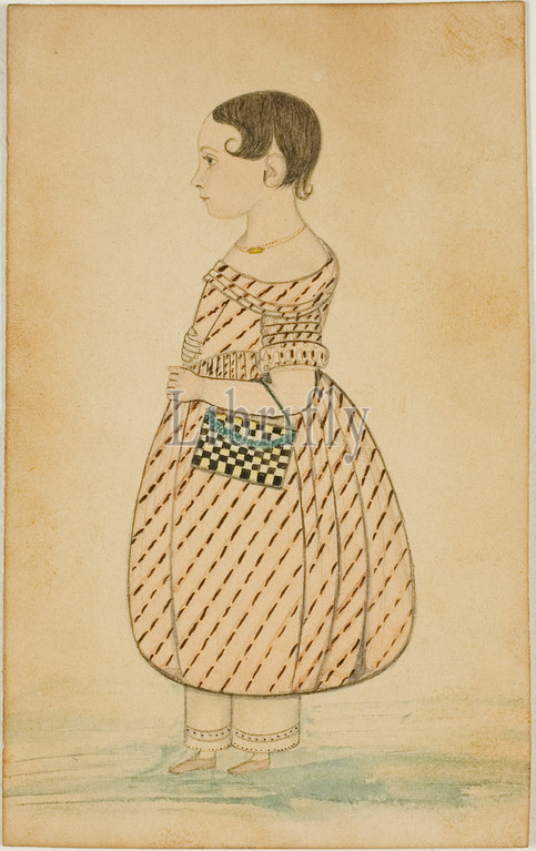 Little Girl, Checkered Purse, Profile, Left, n.d., Unknown Artist, American, English, 19th century, United States, Graphite, pen, black ink, watercolor, cream wove paper, discolored, 121
