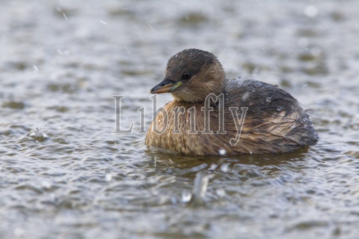 Little Grebe swimming in the rain, Tachybaptus ruficollis, Italy