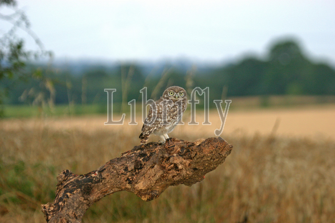 Little Owl perched on trunk, Athene noctua