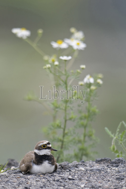 Little Ringed Plover sitting on nest, Charadrius dubius
