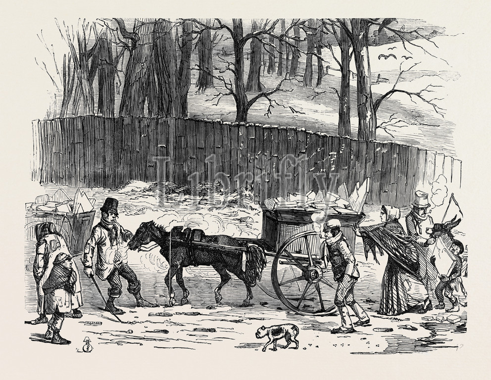 london, ice, carts, uk, 1850 engraving, engraved image, history, illustrative technique, engravement, victorian, arts, culture, retro styled, vintage, retro, arkheia