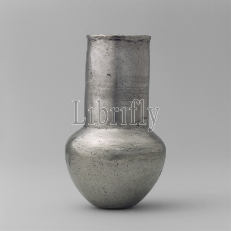 Long-necked jar, Third Intermediate Period, Dynasty 21–22, ca, 1070–712 B.C, Egypt, Eastern Delta, Tell Basta, Bubastis, Temple, Bastet, ancient cache, Silver, H, 11 cm, 4 5/16, WIne services, do, long history, introduced, New Kingdom, wine-drinking, feature, elite society, Ramesside, if, vessels, wine service, associated, presumably, temple festival