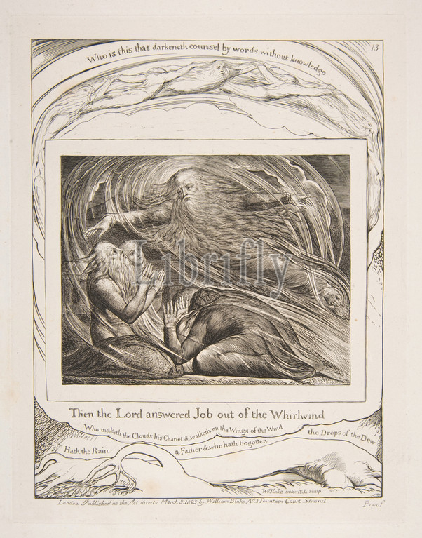 The Lord Answering Job out of the Whirlwind, from Illustrations of the Book of Job, 1825–26, Engraving, plate: 8 1/2 x 6 5/8 in. (21.6 x 16.8 cm), Prints, William Blake (British, London 1757–1827 London)