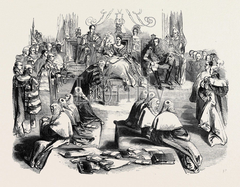 lord, chancellor, presenting, majesty, copy, speech, 1845 engraving, engraved image, history, illustrative technique, engravement, victorian, arts, culture, retro styled, vintage, retro, arkheia