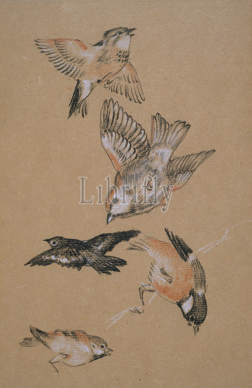 Love leading the Pilgrim, Study of Birds: Finches, 1897 By Sir Edward Burne-Jones, Drawing, ChalkPre-Raphaelite, Bird, Finch