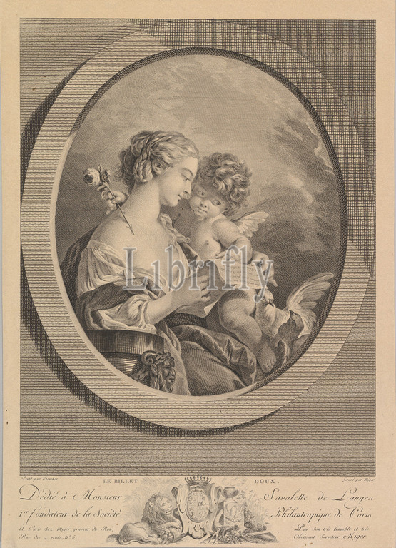 Love Letter, Etching, Engraving, second state, two, sheet, 15 3/16 x 10 7/8, 38.5 27.6 cm, Prints, Simon Charles Miger, French, Nemours, 1736–1820, Paris, After François Boucher, 1703–1770