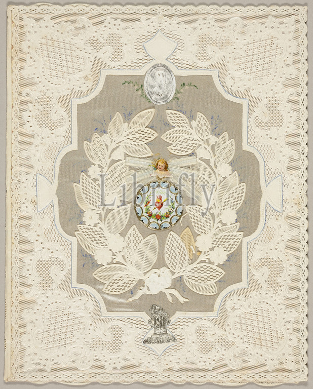 Love, Valentine, c. 1850, Unknown Artist, English, 19th century, England, Collaged elements, watercolor, cut, embossed ivory laid paper, lace, folded, pink wove paper insert, 252