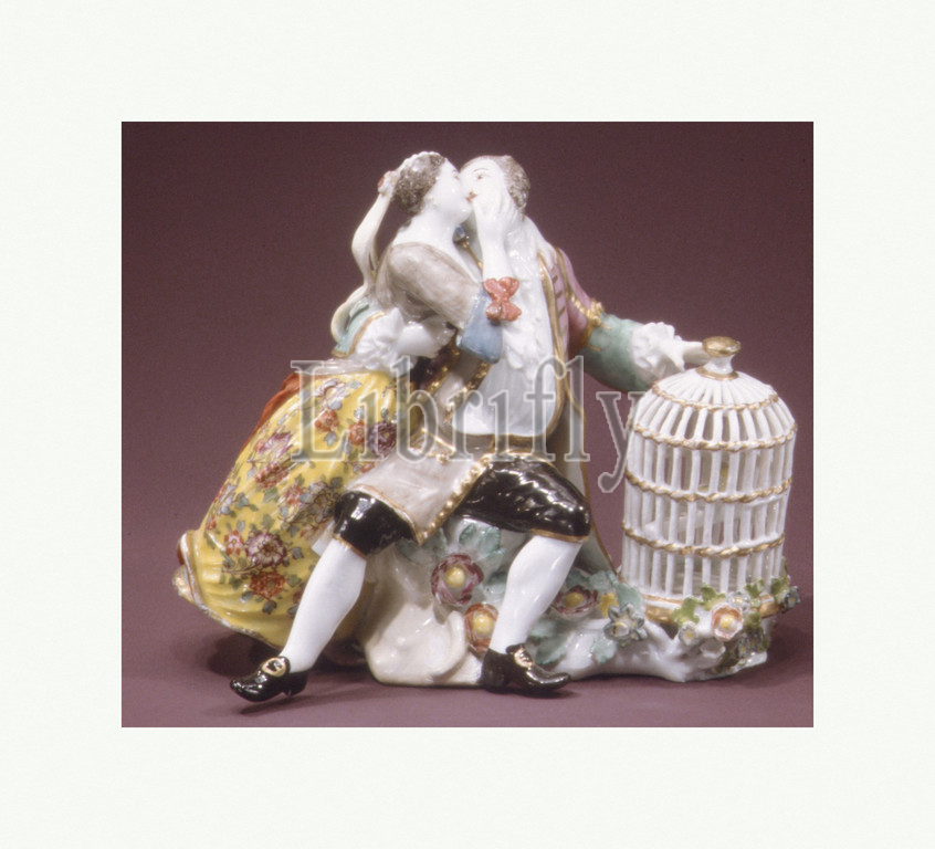 Lovers, Birdcage, December 1737, German, Meissen, Hard-paste porcelain, H, 4-7/8, 12.4 cm, Ceramics-Porcelain, case, porcelain sculptures, Du Paquier, inspired, Meissen model, modeler, Johann Joachim, Kaendler, thought, turn, engraving, series, Rake, Progress, William Hogarth, 1697–1764