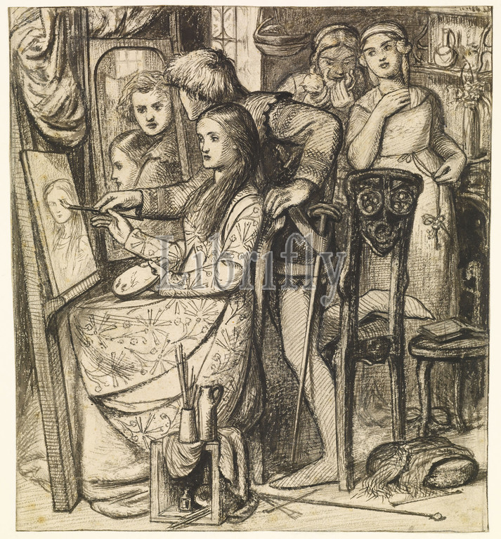 Love, Mirror, Parable, Love, 1850, 1852 Artist, Dante Gabriel Rossetti Black pen, ink, pencil, ink wash, paper, 19th Century, Ink, Pre-Raphaelite, Wash drawing