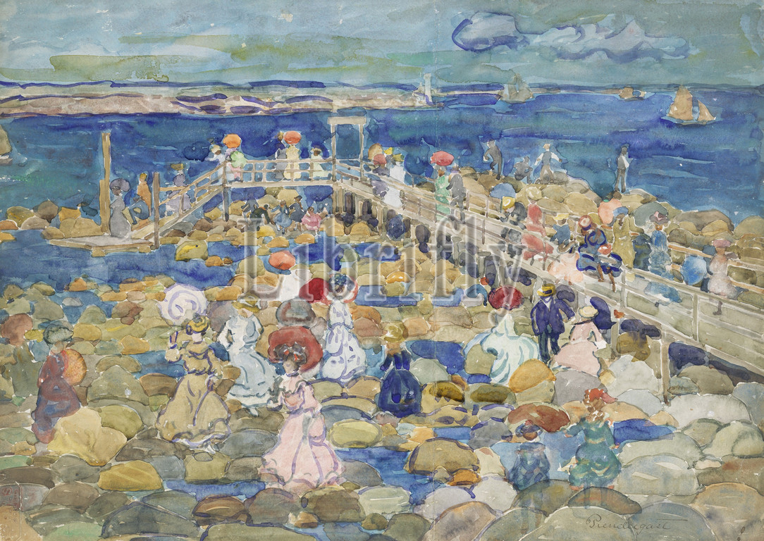 Low Tide, Beachmont, ca, 1900–1905, Watercolor, pencil, 15 3/8 x 22, 39 55.9 cm, Drawings, Maurice Brazil Prendergast, American, St. John’s, Newfoundland, 1858–1924, New York