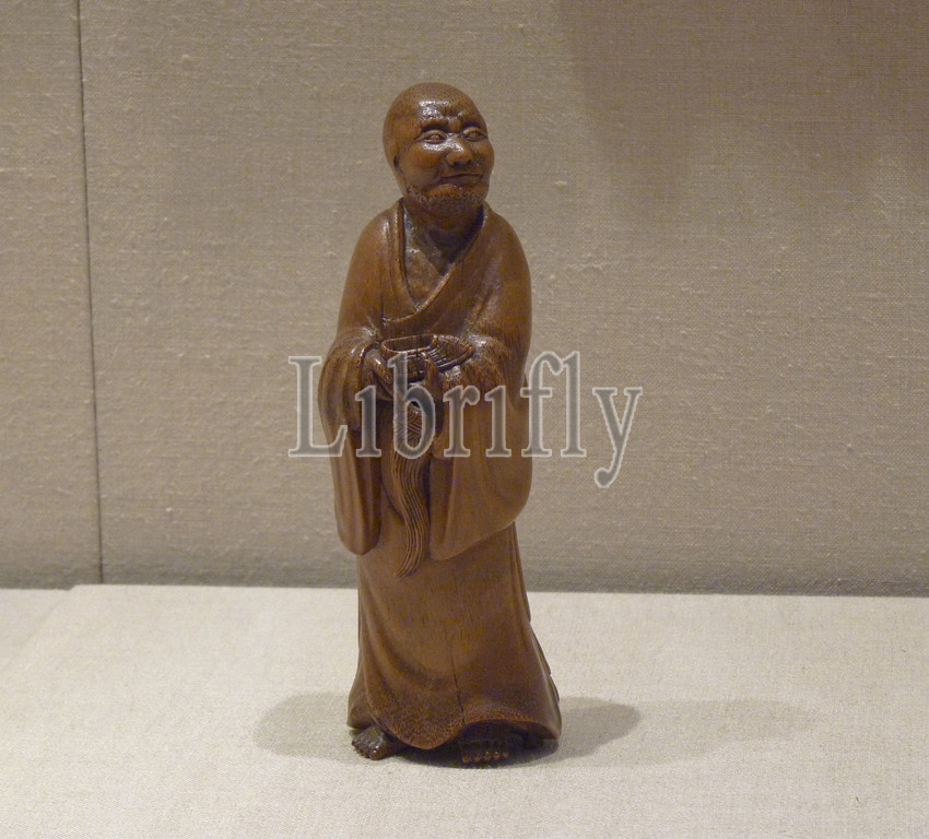 Luohan (Arhat), Qing dynasty (1644–1911), 18th–19th century, China, Bamboo, H. 8 in. (20.3 cm), Bamboo, Although not represented in Indian or Southeast Asian art, luohans (Sanskrit: arhats) play an important role in China, where they appear in both religious painting and sculpture and as a theme in the decorative arts