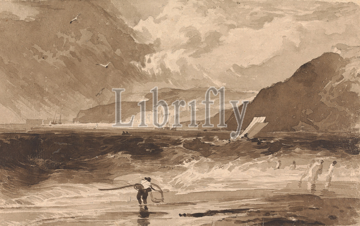 Lyme Regis, Dorsetshire, Squall, Thomas Sully, 1783–1872, American, Watercolor, graphite, brown wash, moderately thick, slightly textured, beige, laid paper, Sheet
