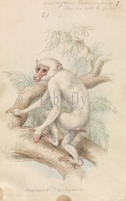 Macacus, Maimon, Brachyurus, White Maimon, Charles Hamilton Smith, 1776–1859, Belgian, ca, 1837, Watercolor, pen, red ink, gray ink, graphite, medium, slightly textured, cream, wove paper, Sheet, animal art, monkey, animal
