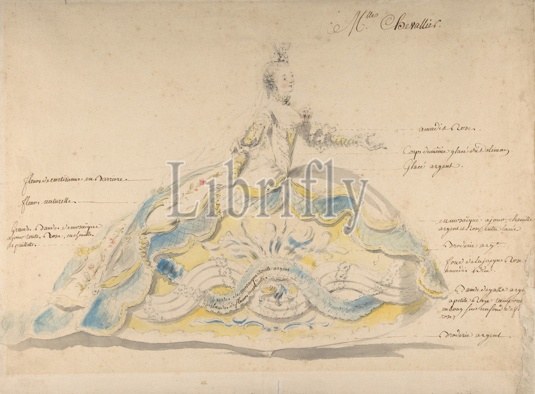 Mademoiselle Marie-Jeanne Fesch Chevallier, Black chalk and watercolor, 14 x 18 3/8 in. (35.5 x 46.7 cm), Louis René Boquet (French, 1717–1814), Mlle. Marie-Jeanne Fesch Chevallier (Paris 1722 - after 1789 Paris) was a famous French opera singer. She made her debut with the Paris Royal Opera in 1741 starring as Cybèle in Lully's Atys, and she retired from the stage in 1761 after collaborating with Boquet for her costume in Lully's Armide