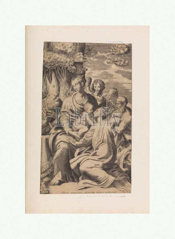 Madonna, Child Attended, Saints, ca, 1543, Engraving, Prints, Giulio Bonasone, Italian, active Rome and Bologna, 1531–after, 1576, After Parmigianino, Girolamo Francesco Maria Mazzola, Parma, 1503–1540, Casalmaggiore, Mariette, Album, folio 75