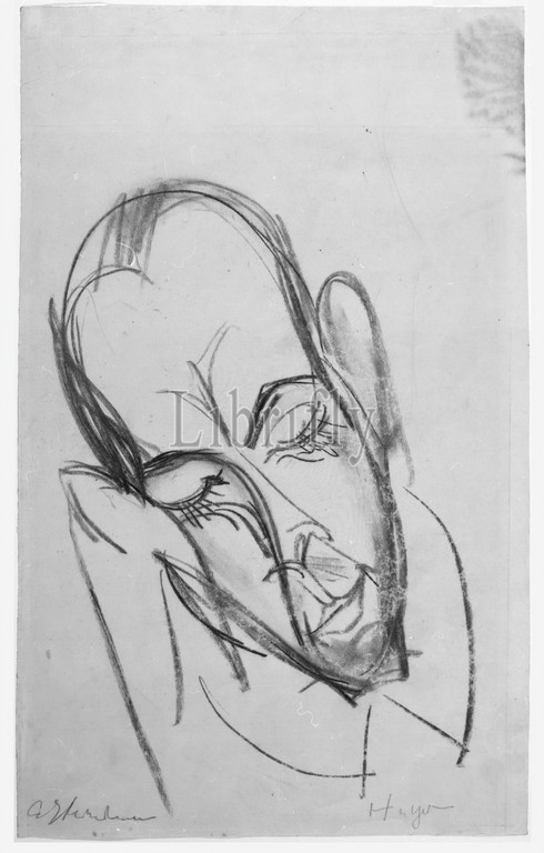 Maennlicher Kopf, Head, Man, Ernst Ludwig Kirchner, German, 1880-1938, Charcoal drawing, wove paper, Sheet, 18 15/16 x 11 3/4, 48.1 x 29.8 cm, asleep, bald, charcoal, dozing, leaning, line drawing, sketch, sleepy