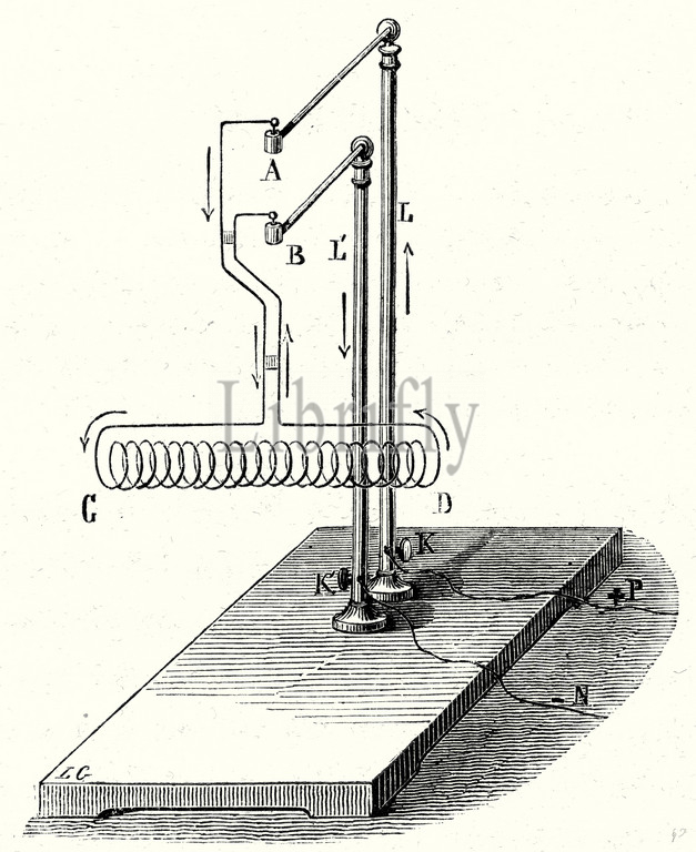 magnetic propeller, 'soleid', 'soléïde', science, invention, 19th century, 19th century engraving, new invention, invention ideas, famous inventions, nineteenth century, the 19th century, 19th century history, in 19th century, vintage, old print, 19th century, victorian, retro, quint, lox, engraving