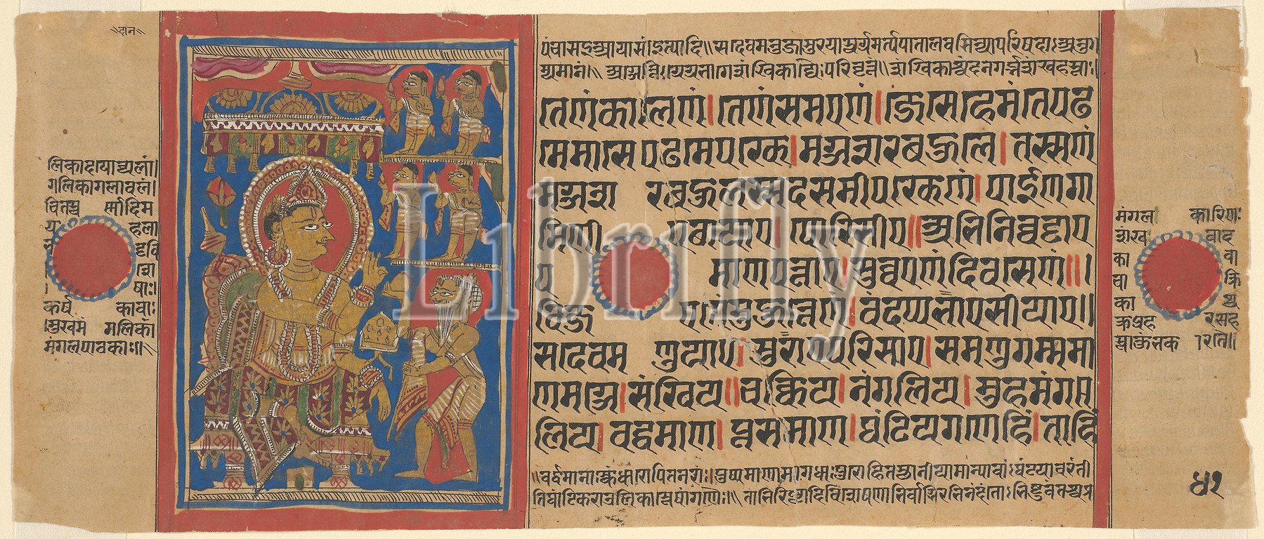 Mahavira Gives Away, Possessions, copy, Kalpasutra, 1480/90, India, Gujarat, Opaque watercolor, gold, ink, paper, Image, 9.6