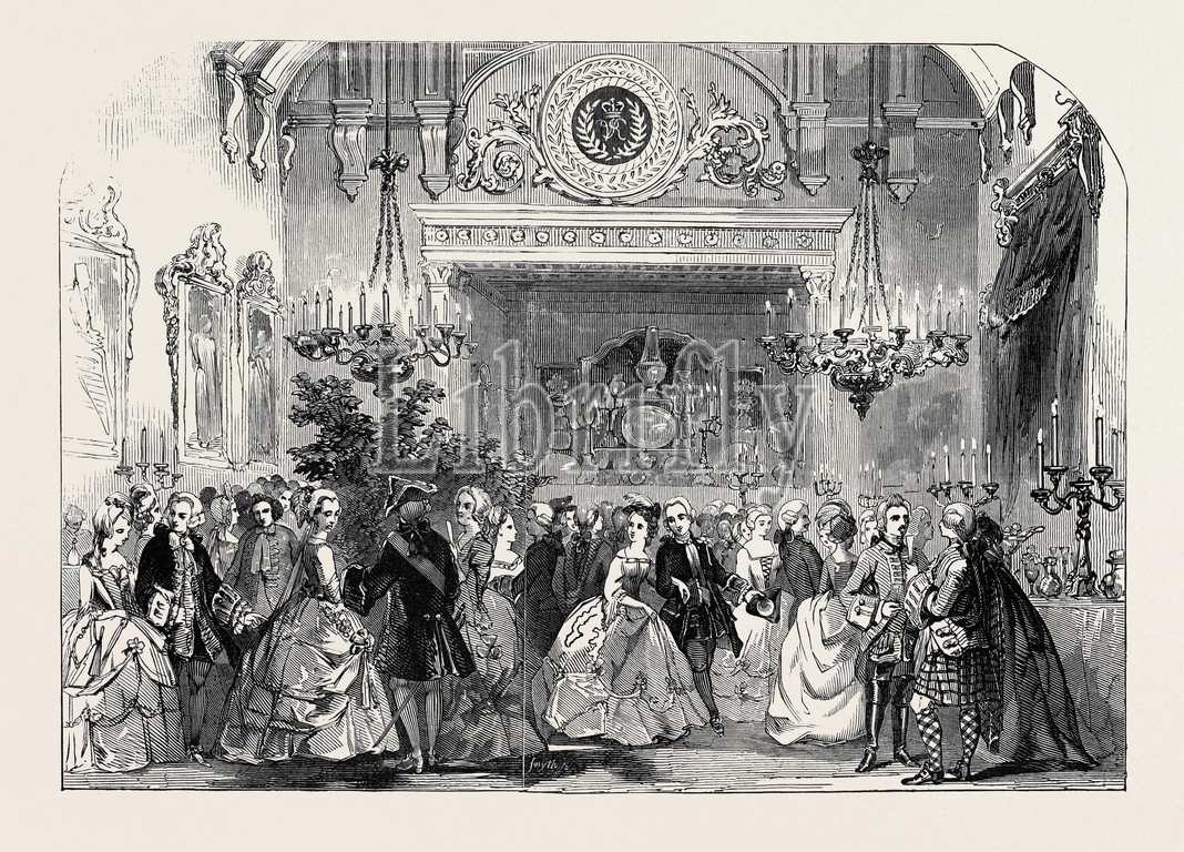 majesty's, costume, ball, supper, great, dining, home, inside, inner, internal, intramural, on the inside, interior, house, living, domestic, indoors, home, inside, inner, internal, intramural, on the inside, interior, room, 1845 engraving, engraved image, history, illustrative technique, engravement, victorian, arts, culture, retro styled, vintage, retro, arkheia