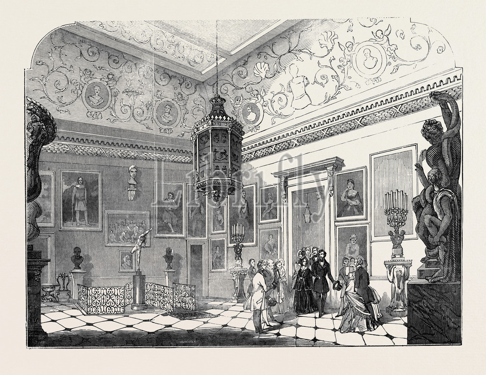 majesty's, departure, stowe, home, architecture, residential, building, property, house, 1845 engraving, engraved image, history, illustrative technique, engravement, victorian, arts, culture, retro styled, vintage, retro, arkheia