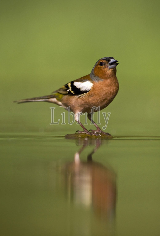 Male Common Chaffinch drinking at drinking site, Fringilla coelebs