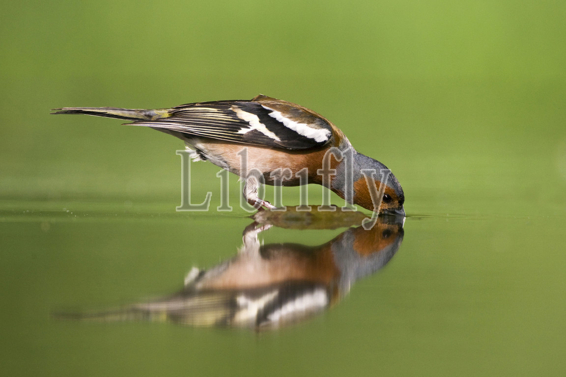 Male Common Chaffinch drinking at drinking site, Fringilla coelebs