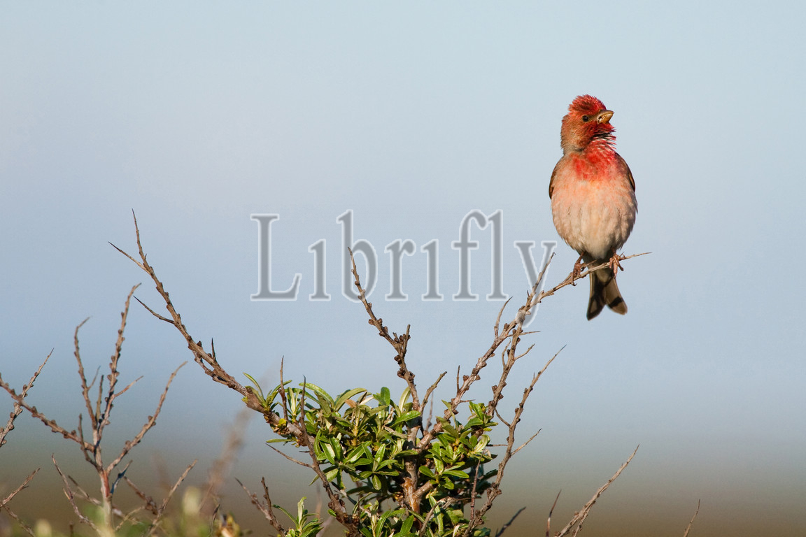 Male Common Rosefinch singing, Carpodacus erythrinus