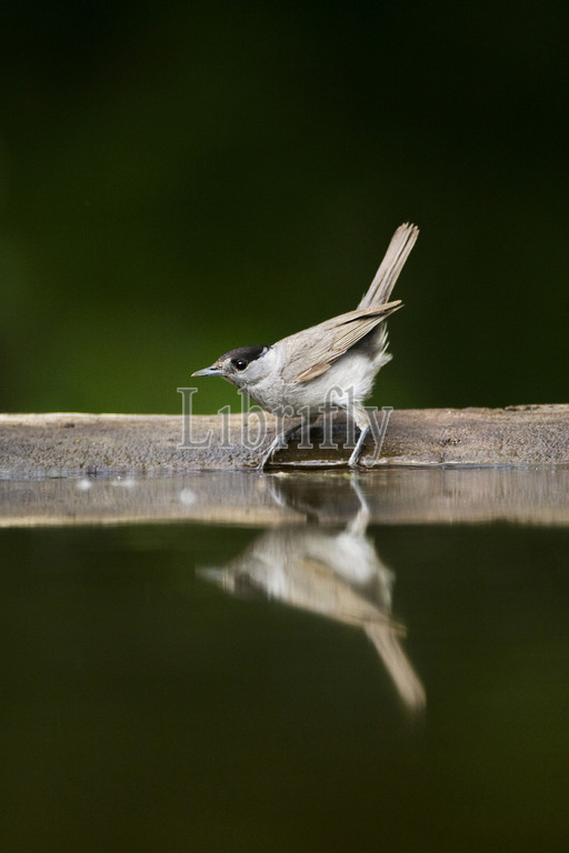 male Eurasian Blackcap drinking, Sylvia atricapilla